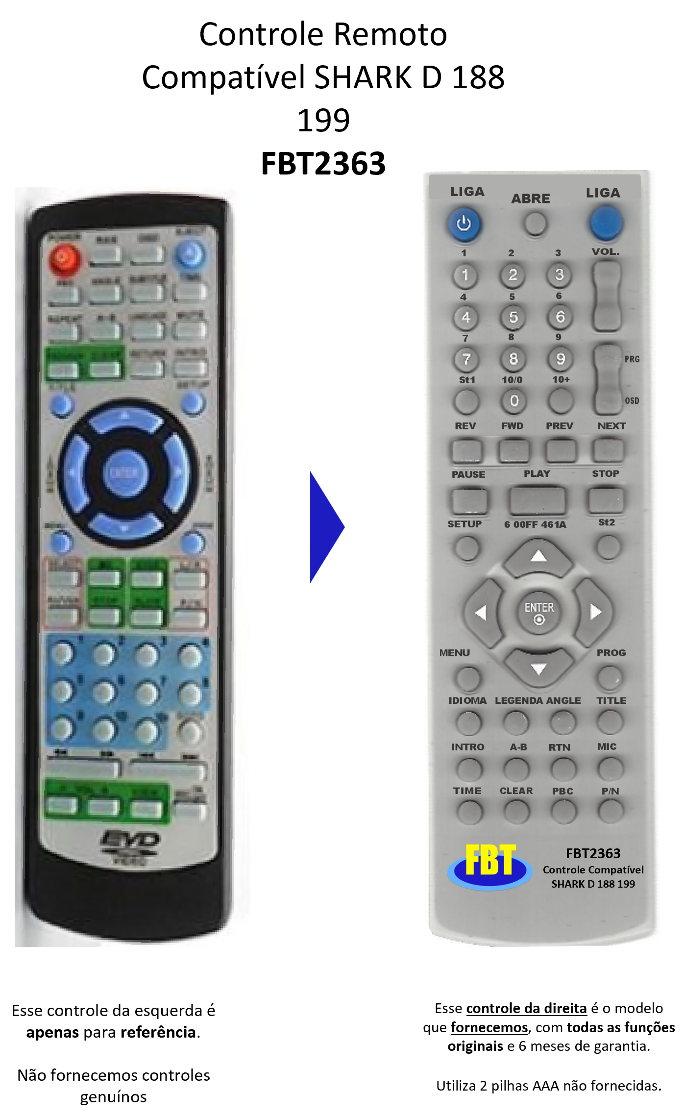 Fornecemos apenas o controle compatível (controle remoto que está a direita da imagem).