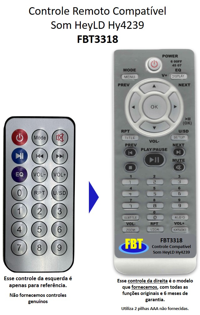 Fornecemos apenas o controle compatível (controle remoto que está a direita da imagem).