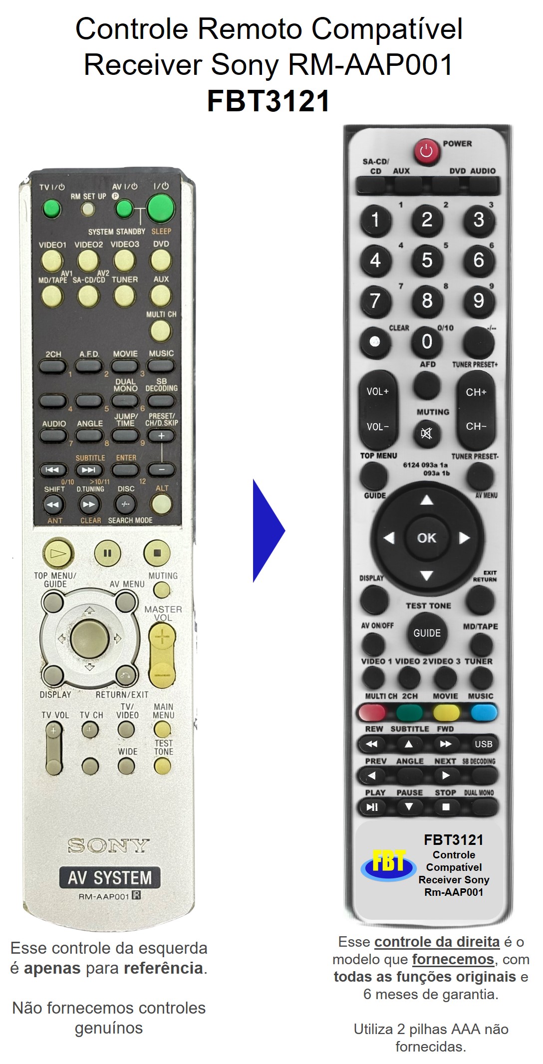 Controle Remoto Compatível Sony Home Theater Rm-AAP001 FBT3121