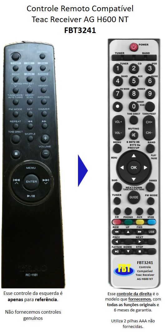 Controle Remoto Compatível Teac Receiver AG H600 NT FBT3241