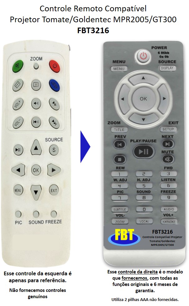 Fornecemos apenas o controle compatível (controle remoto que está a direita da imagem).