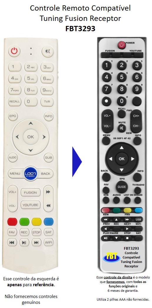 Nós produzimos e vendemos os controles remotos compatíveis com visual diferente, totalmente funcional e com 6 meses de garantia e reposição permanente.