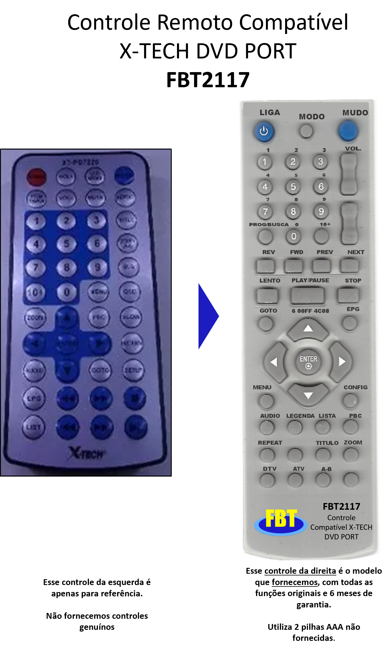 Controle Remoto Compatível X-TECH DVD PORT FBT2117
