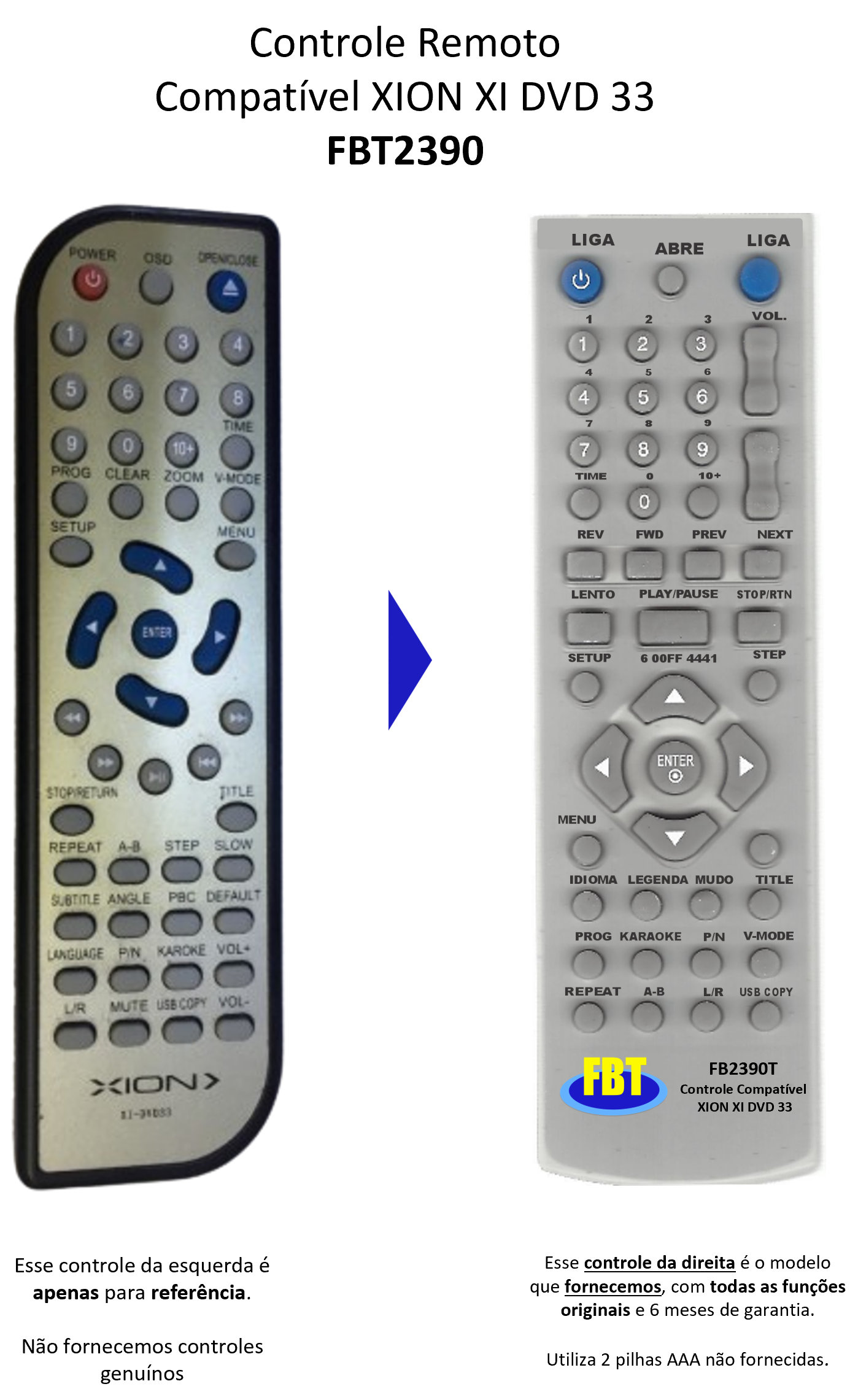 Controle Remoto Compatível XION XI DVD 33 FBT2390