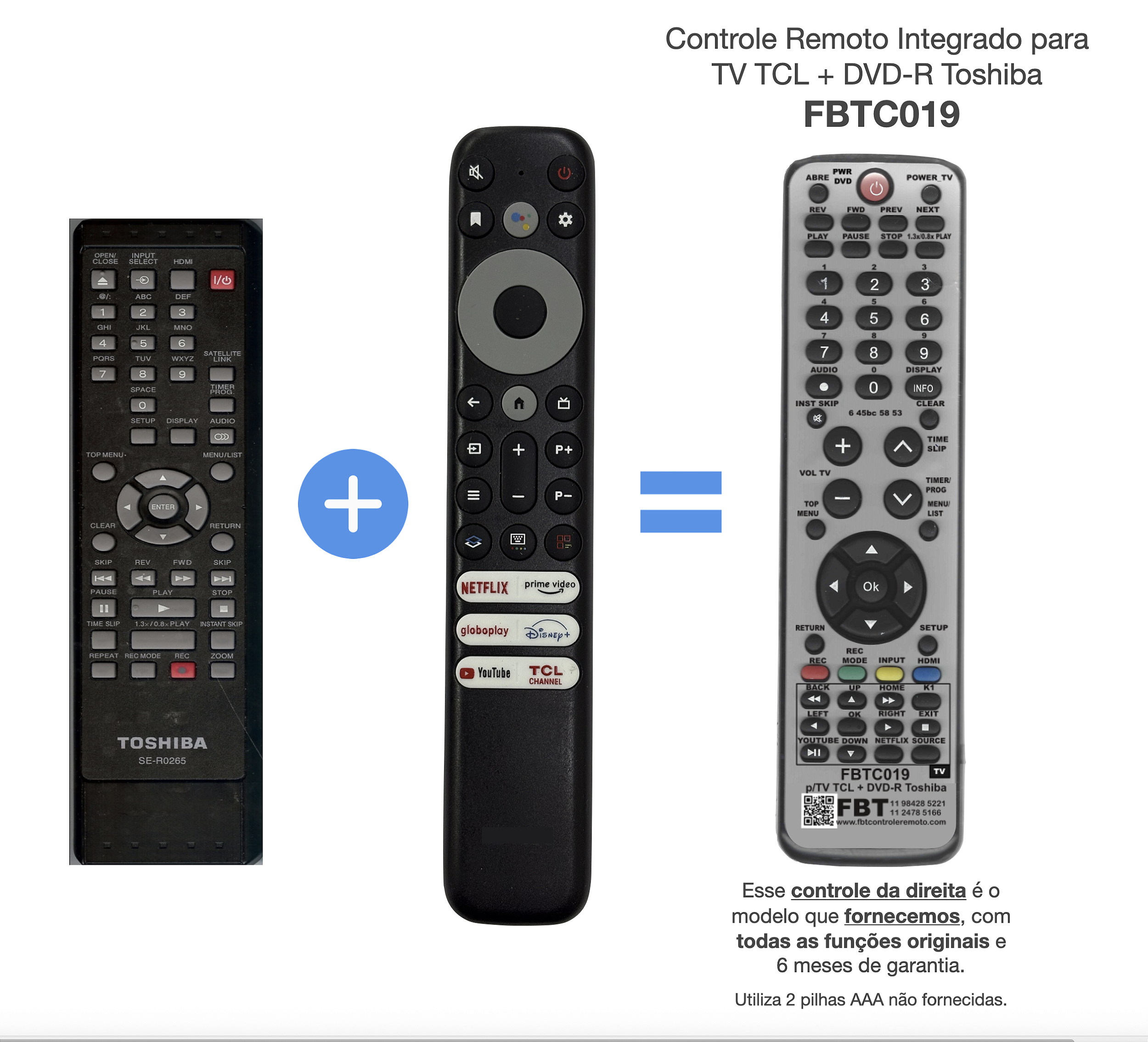 Controle Remoto Integrado para TV TCL + DVD-R Toshiba FBTC019