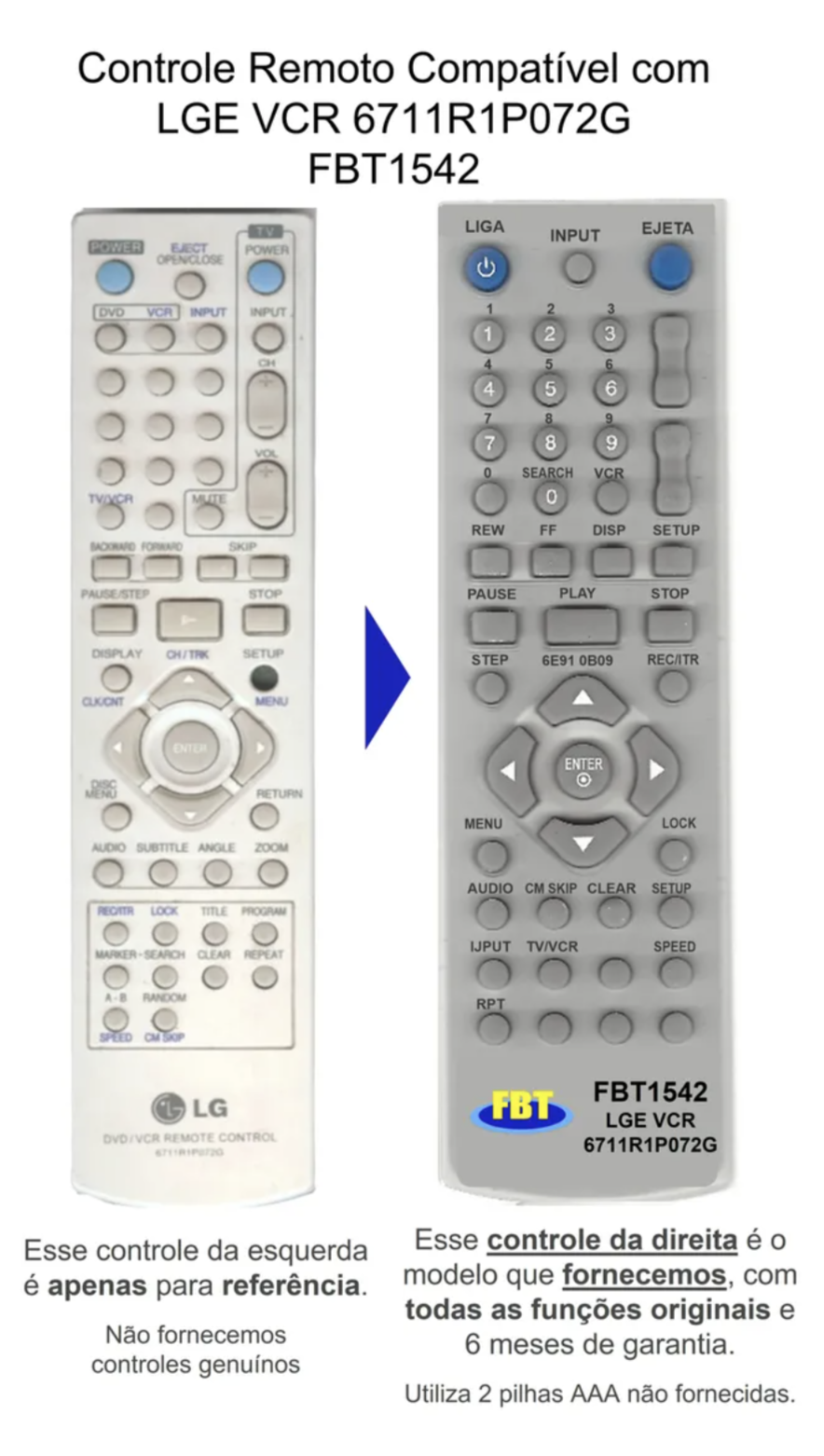 Controle Remoto Compatível Vcr 6711r1p072g Fbt1542