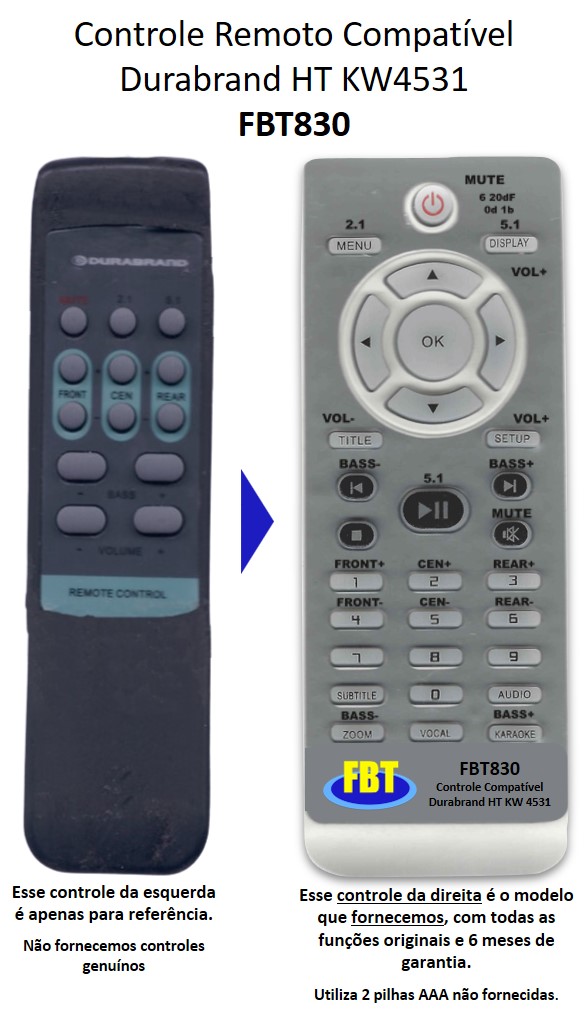 Controle Compatível para HT Home Durabrand KW RW 4531 FBT830
