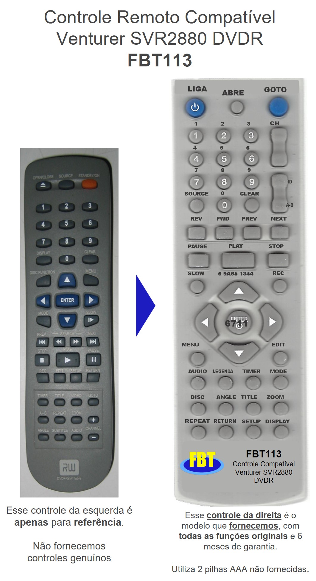 Observe que muitas marcas e modelos utilizam o mesmo controle remoto, mudando a cor do painel e a marca, preste MUITA ATENÇÃO no FORMATO do controle, se as FUNÇÕES das TECLAS são IGUAIS, como também em suas POSIÇÕES ao teu original, dessa forma facilita na busca do teu controle remoto.