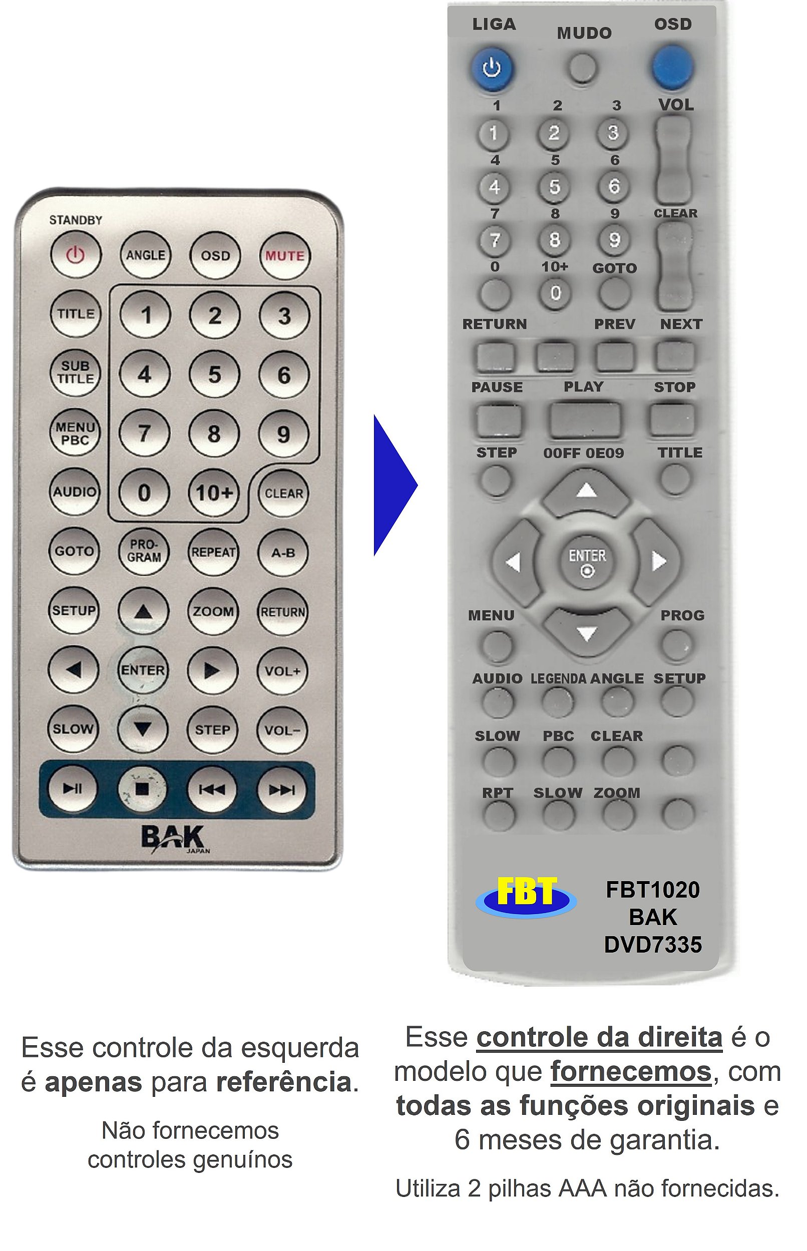 Controle Remoto Compatível com BAK DVD7335 FBT1020