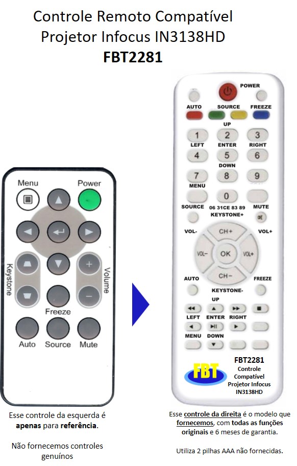 Controle Compatível para Projetor IN3138HD Infocus FBT2283